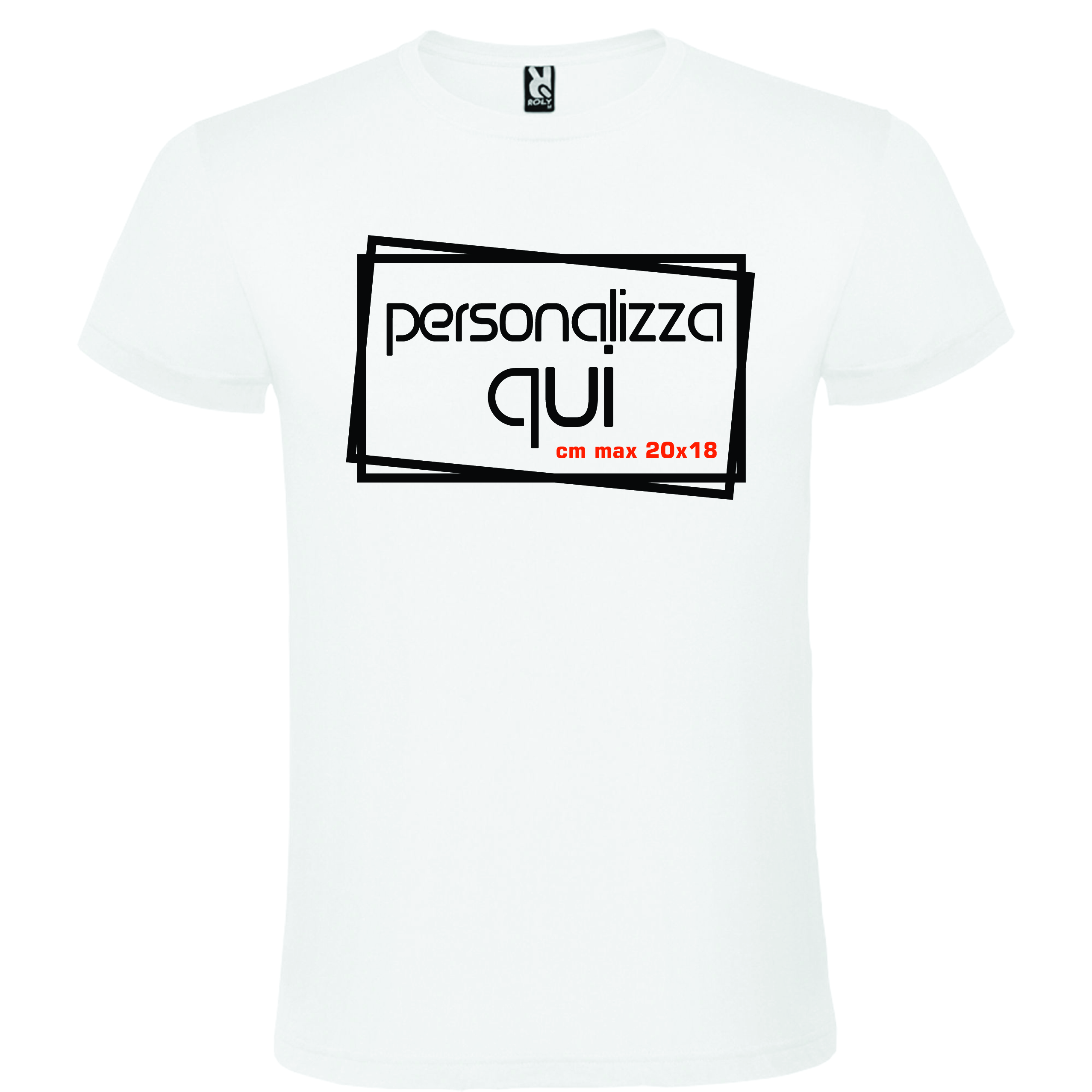 Crea la tua T-shirt con il tuo logo, disegno, immagine, foto o scritta.