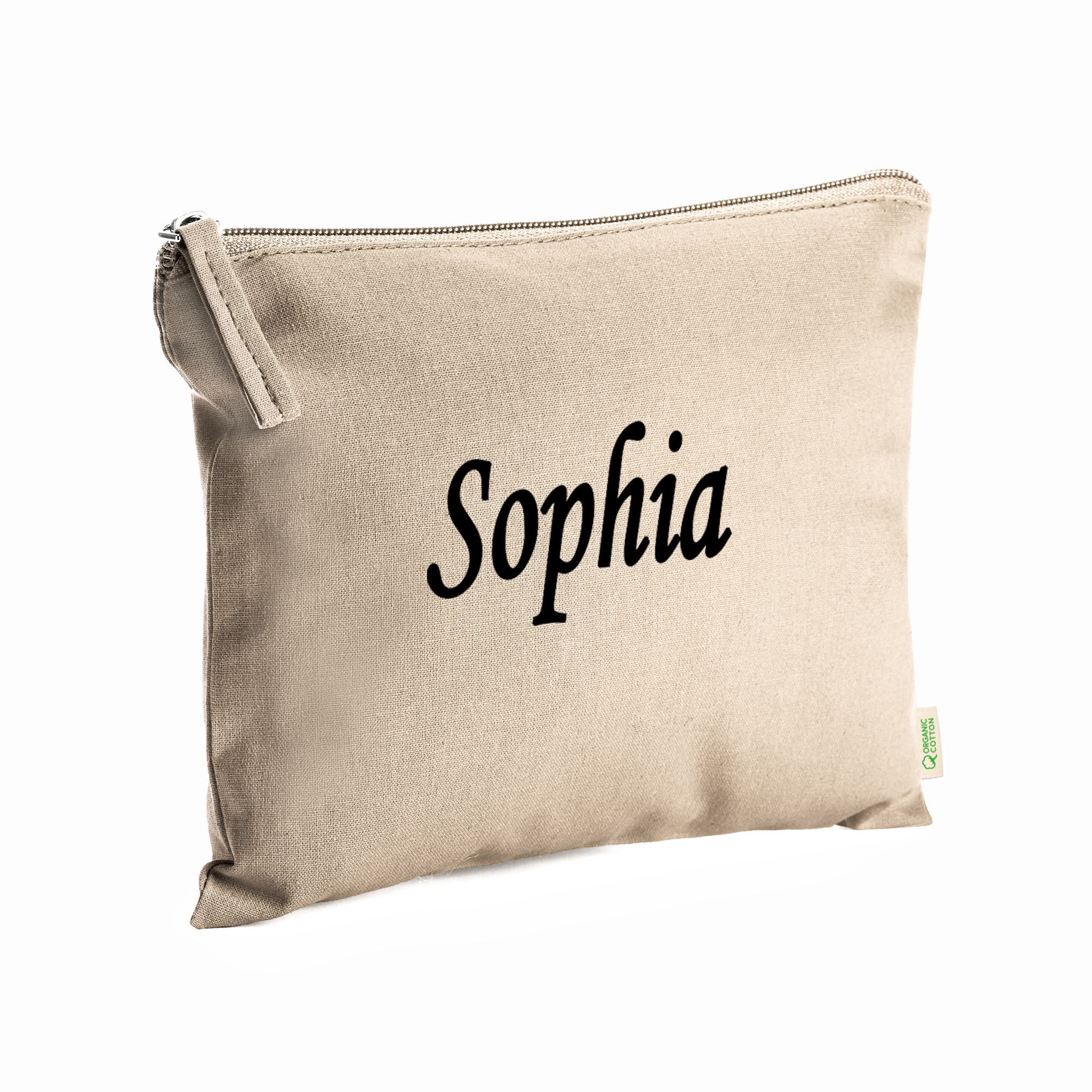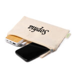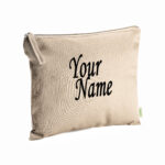 Beauty case in 100% cotone biologico 180 g/m² con manico abbinato, color sabbia.