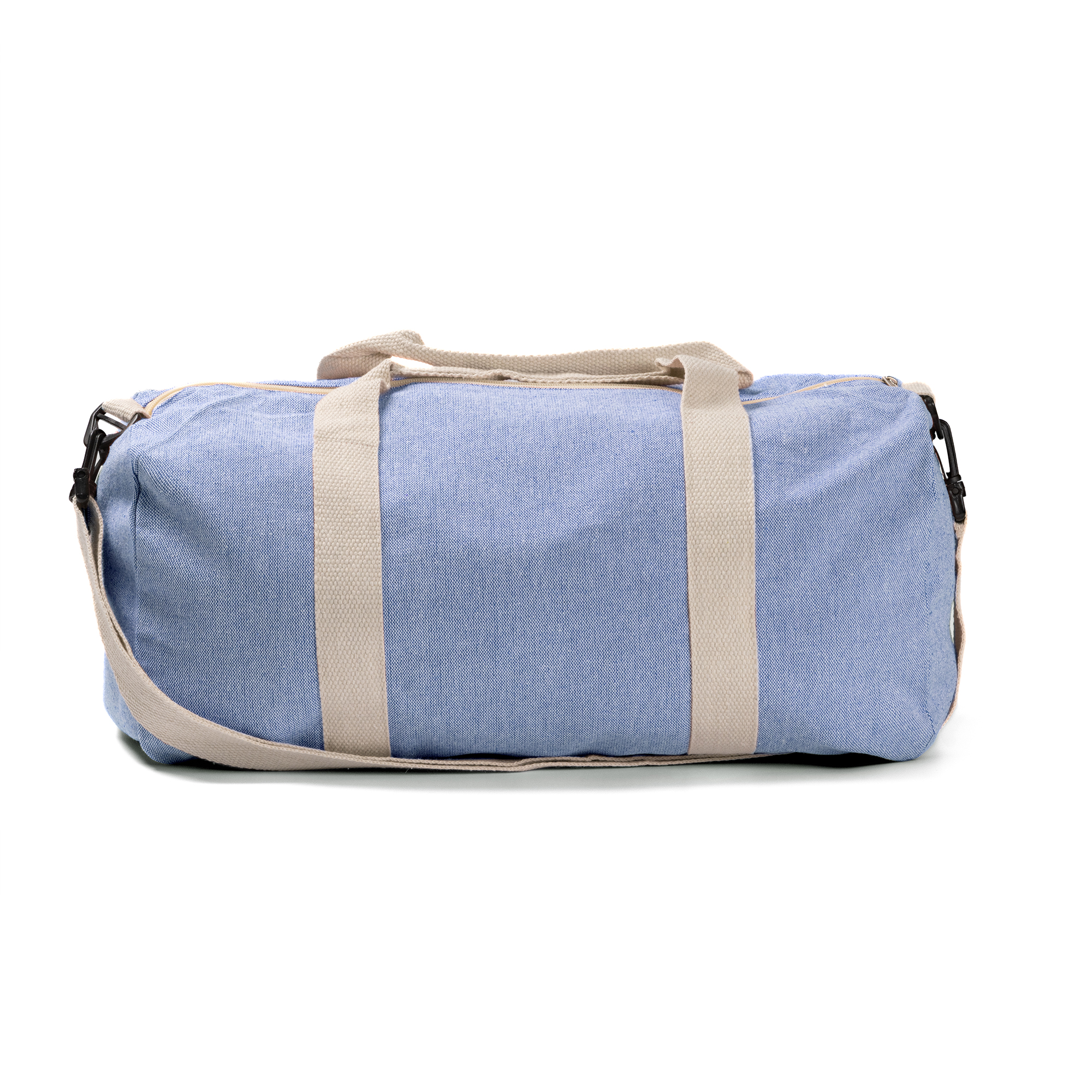 Borsone multifunzione in cotone riciclato da 320 g/m² con finitura mélange su color royal, rosso o beige.