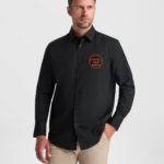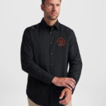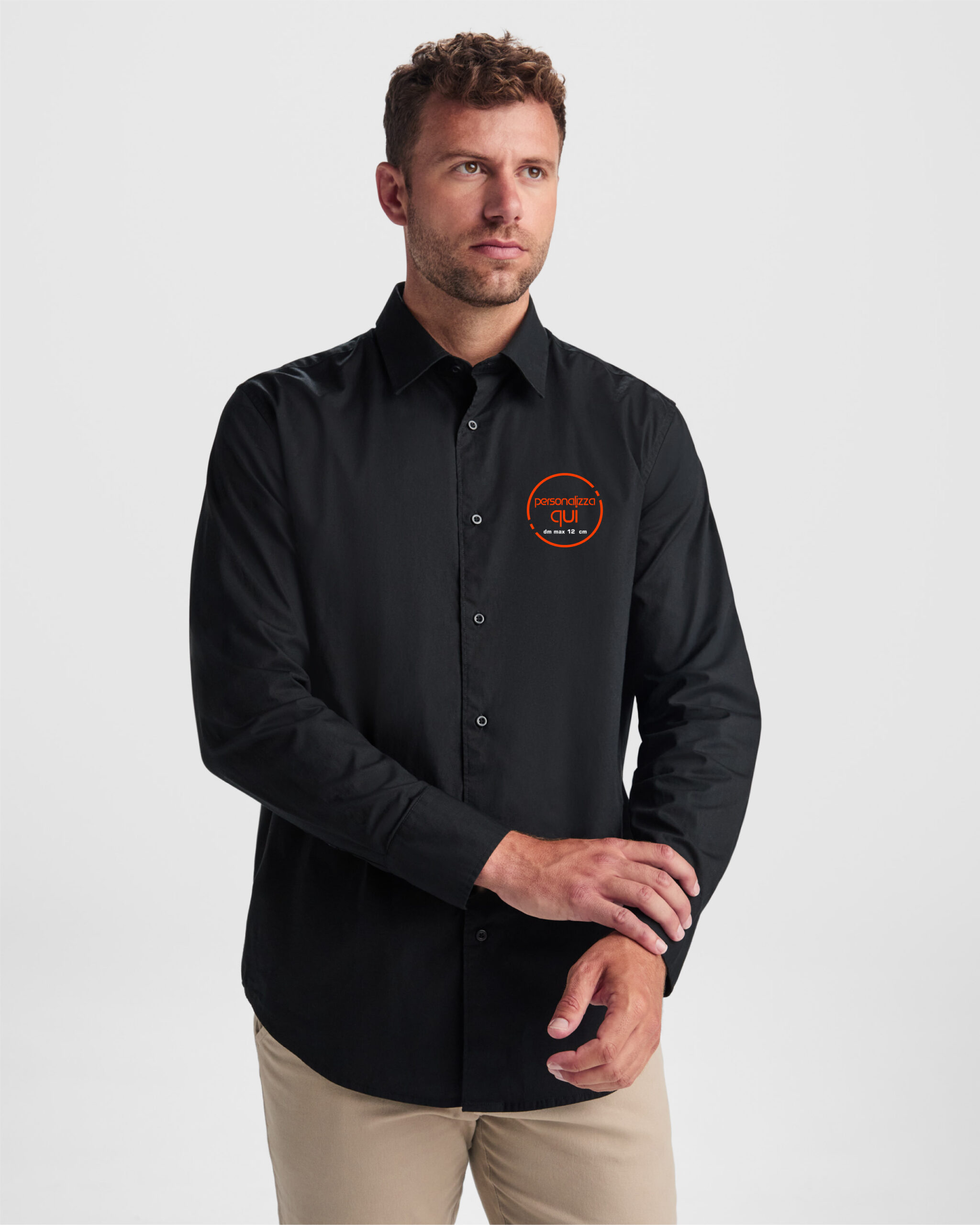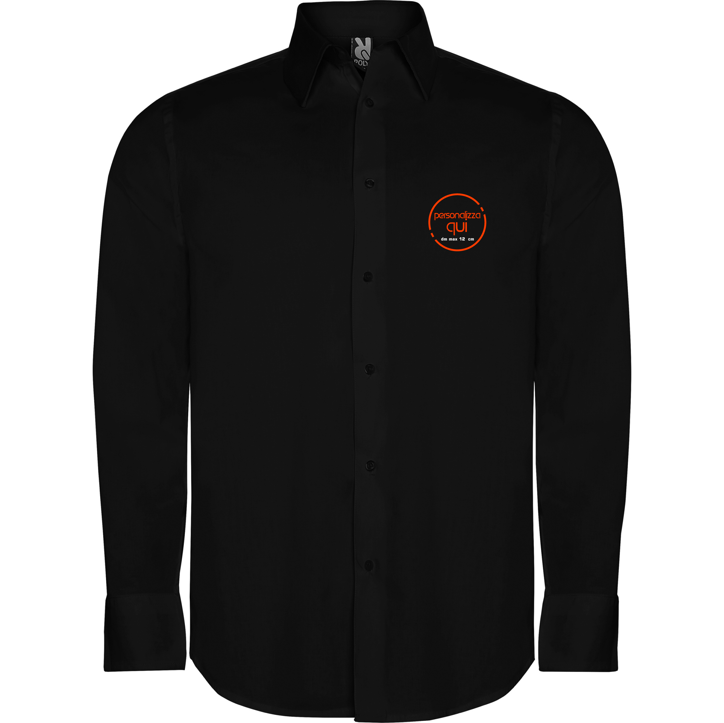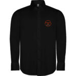 Camicia a maniche lunghe da uomo nera. Ideale per lavori di sala. Personalizzata lato cuore