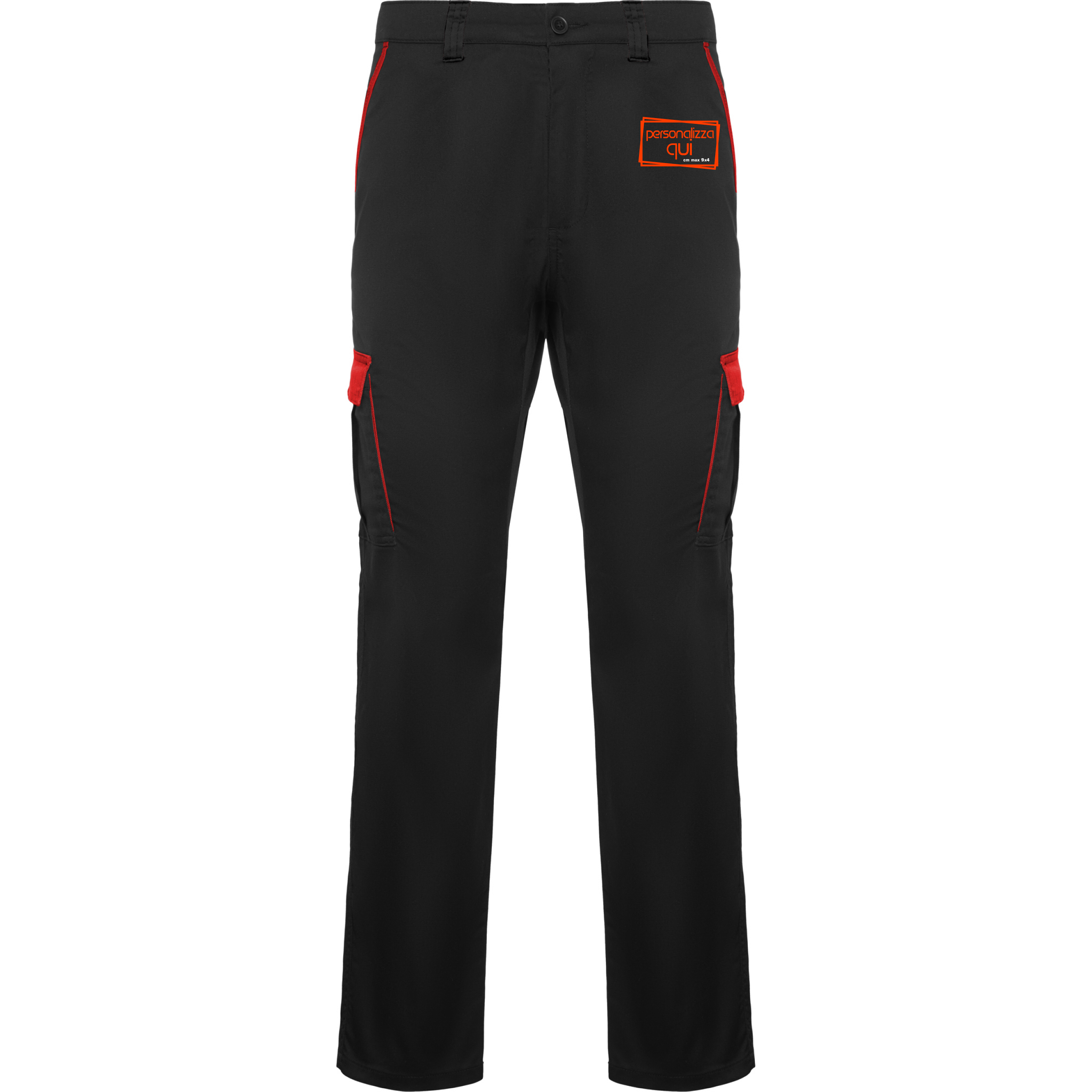 Pantalone multitasche. Taglie unisex. Personalizzato lato tasca sx.