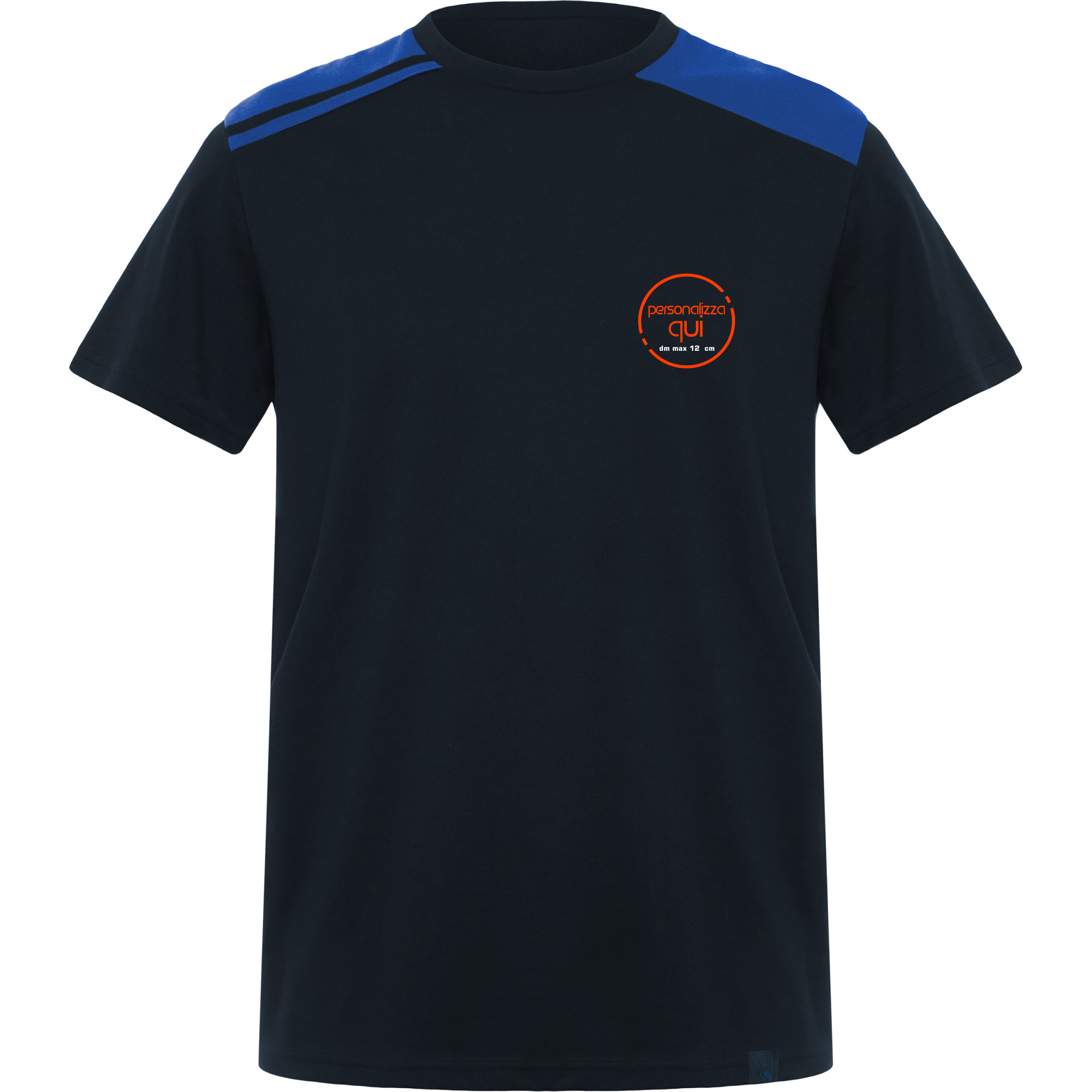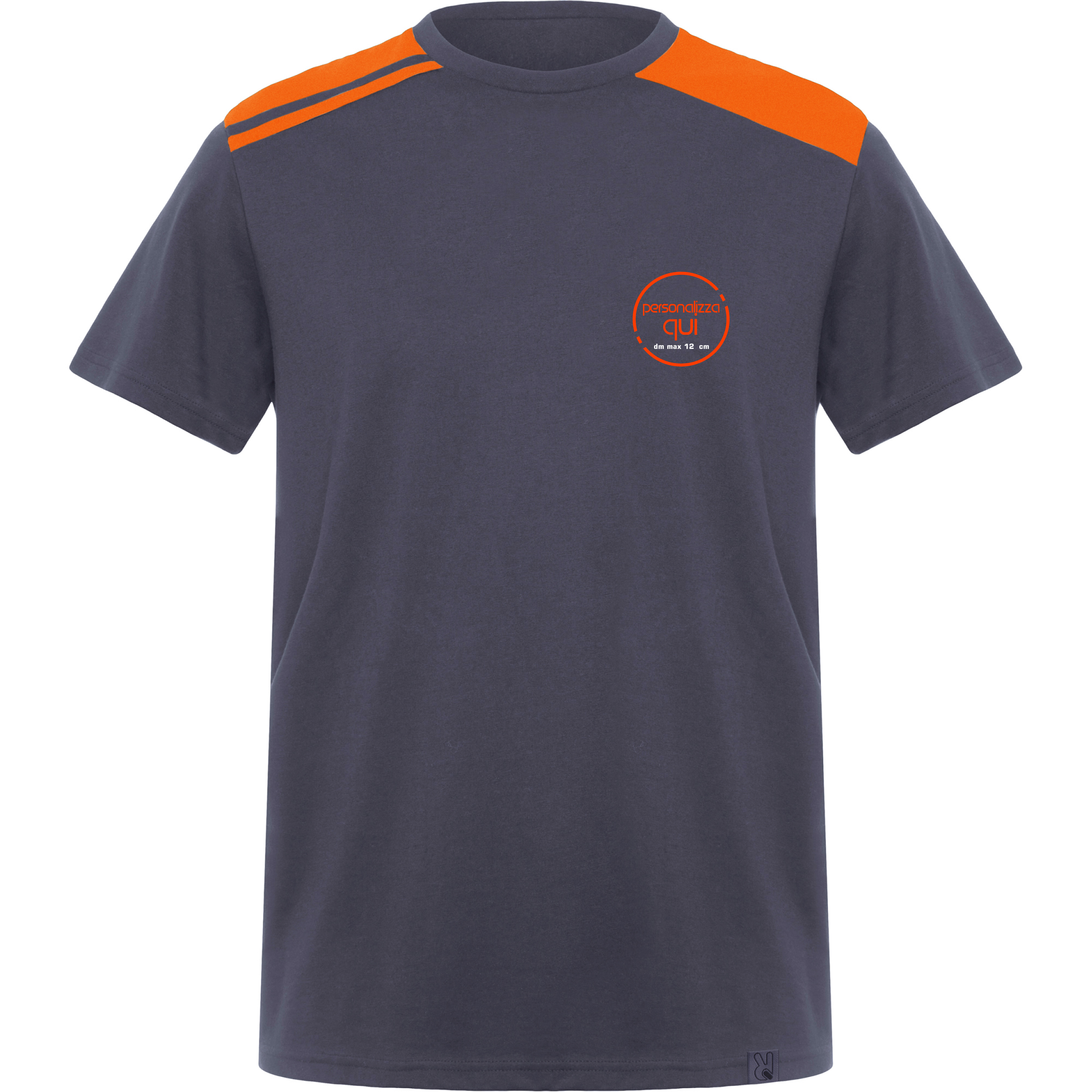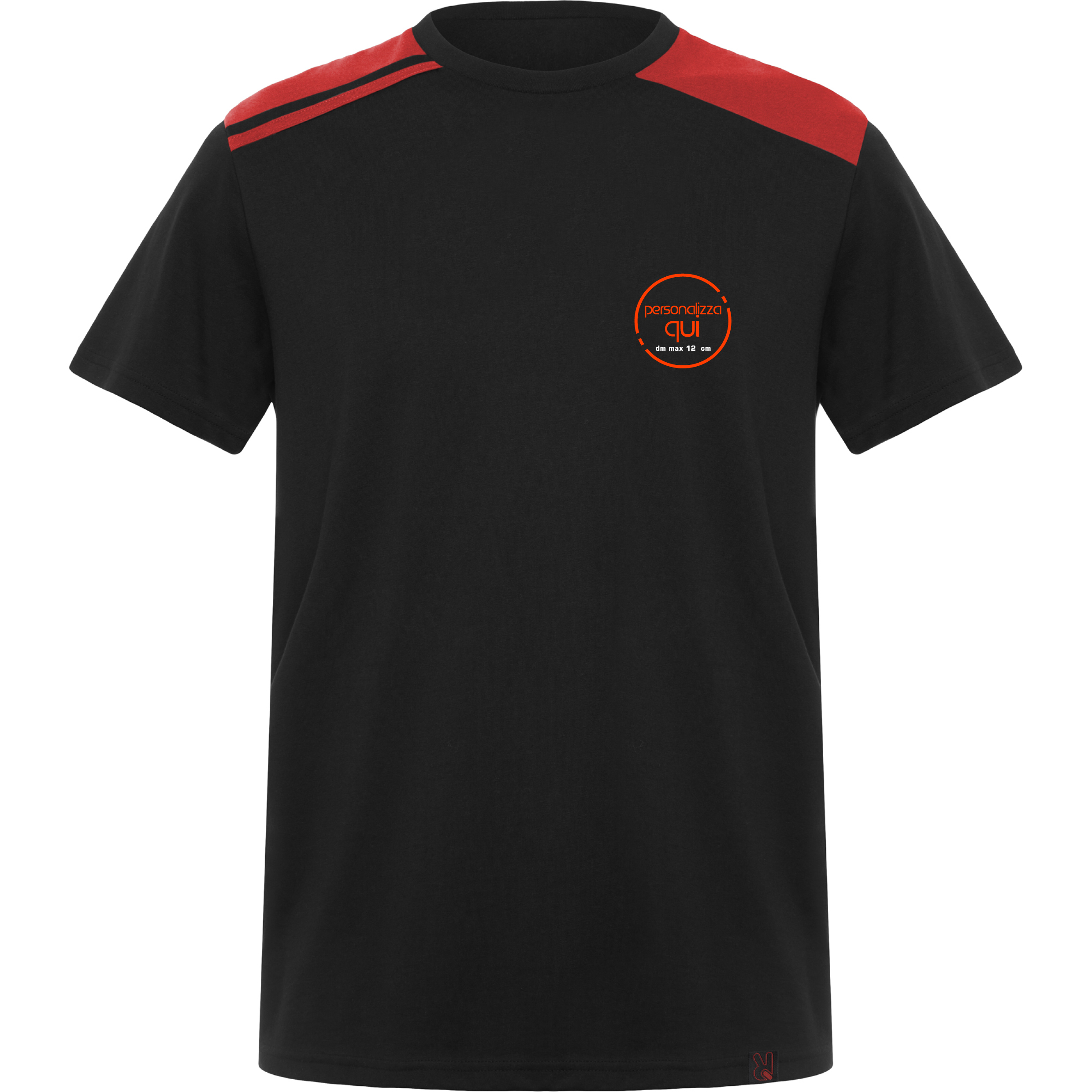 . Lato cuore diametro max 12 cm – realizzato in DTF in base al vostro logo o scritta; alternativa per colori fluo TRANSFER